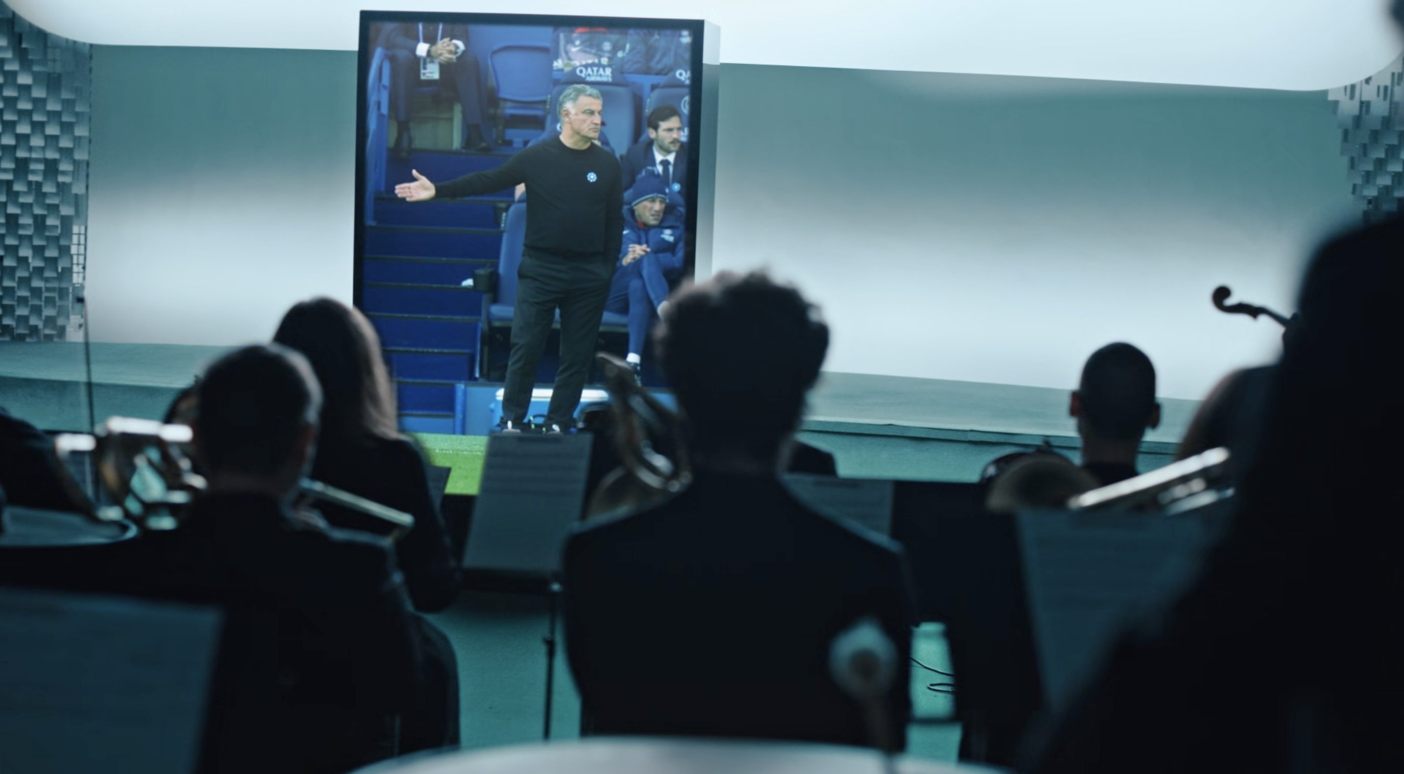 « Depuis que Prime Video a fait l’acquisition des droits de diffusion de la Ligue 1, ils ont fait en sorte que le championnat soit de plus en plus spectaculaire et de plus en plus grandiose. On a remarqué qu’il manquait quelque chose à la Ligue 1 pour la mettre au même rang, au même niveau que les grandes compétitions internationales, comme la Ligue des Champions par exemple. Et ce truc qui manquait, c’est une symphonie qui plonge tout de suite dans l’ambiance. Lorsqu’on est fan de foot, que l’on entend la mélodie de la Ligue des Champions, on sait qu’on va vivre un moment historique et un grand moment de sport. » nous expliquent Alexandre Girod (concepteur-rédacteur) et Julien Vergne (directeur artistique), les deux créatifs derrière ce projet chez Marcel. « Mais Prime Video, c’est avant tout une plateforme de divertissement, on ne pouvait pas composer et réaliser cet hymne comme n’importe quel autre. Il fallait remplacer les chefs d’orchestre par les entraîneurs. Quand on regarde les entraîneurs, la manière dont ils dirigent leurs joueurs sur le terrain, c’est exactement la même gestuelle que les chefs d’orchestre lorsqu’ils dirigent leurs musiciens ».