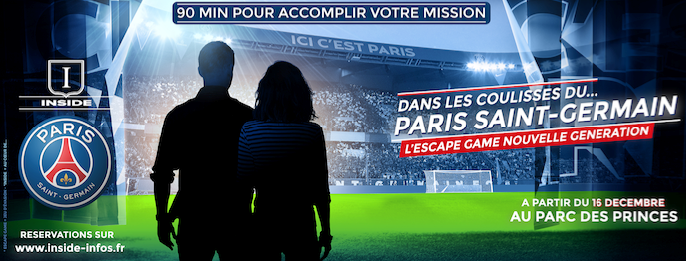 Conçu en collaboration avec la société Team Break spécialisée dans le Live Escape Game, « Inside PSG » proposera aux joueurs une aventure immersive au sein du Parc des Princes avec la possibilité de circuler librement dans plusieurs lieux dont le vestiaire des joueurs, le bord pelouse, les loges, le salon Emirates, le Carré, la zone mixte, le couloir des joueurs, le salle de conférences de presse et bien d’autres endroits. Jusqu’à 150 personnes pourront s’élancer dans l’aventure toutes les 30 minutes.