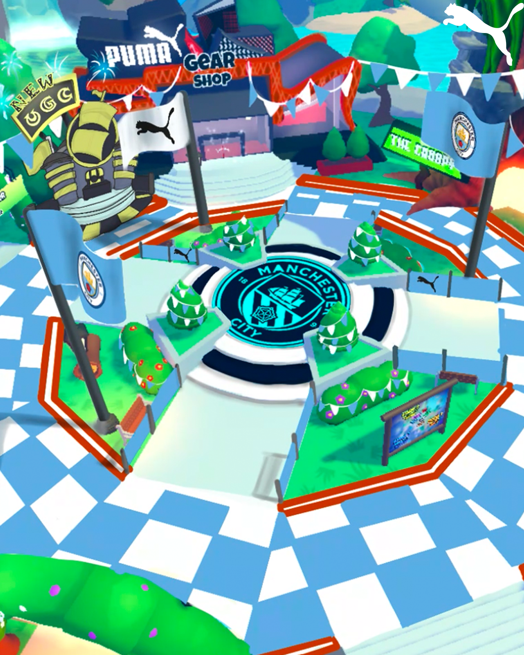 Dans l’expérience PUMA et le Land of Games, les utilisateurs Roblox peuvent découvrir et revêtir le maillot Third (et le domicile) du club de Premier League. D’autres goodies Manchester City seront également proposés dans l’univers virtuel.
