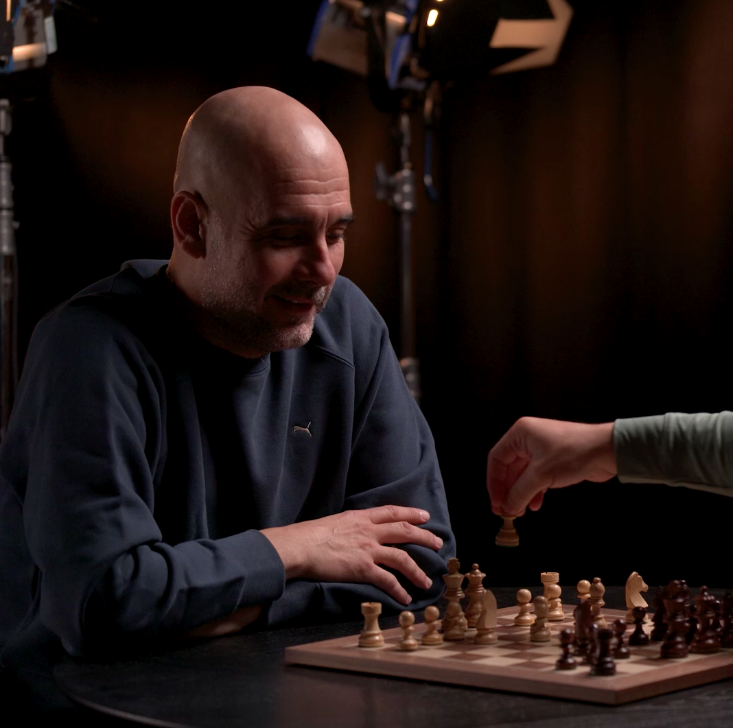 En collaboration avec Manchester City et Chess.com (première plateforme mondiale de jeux d’échecs en ligne), Puma a rassemblé le coach du club anglais et l’actuel numéro 1 aux échecs pour une « conversation inédite ».