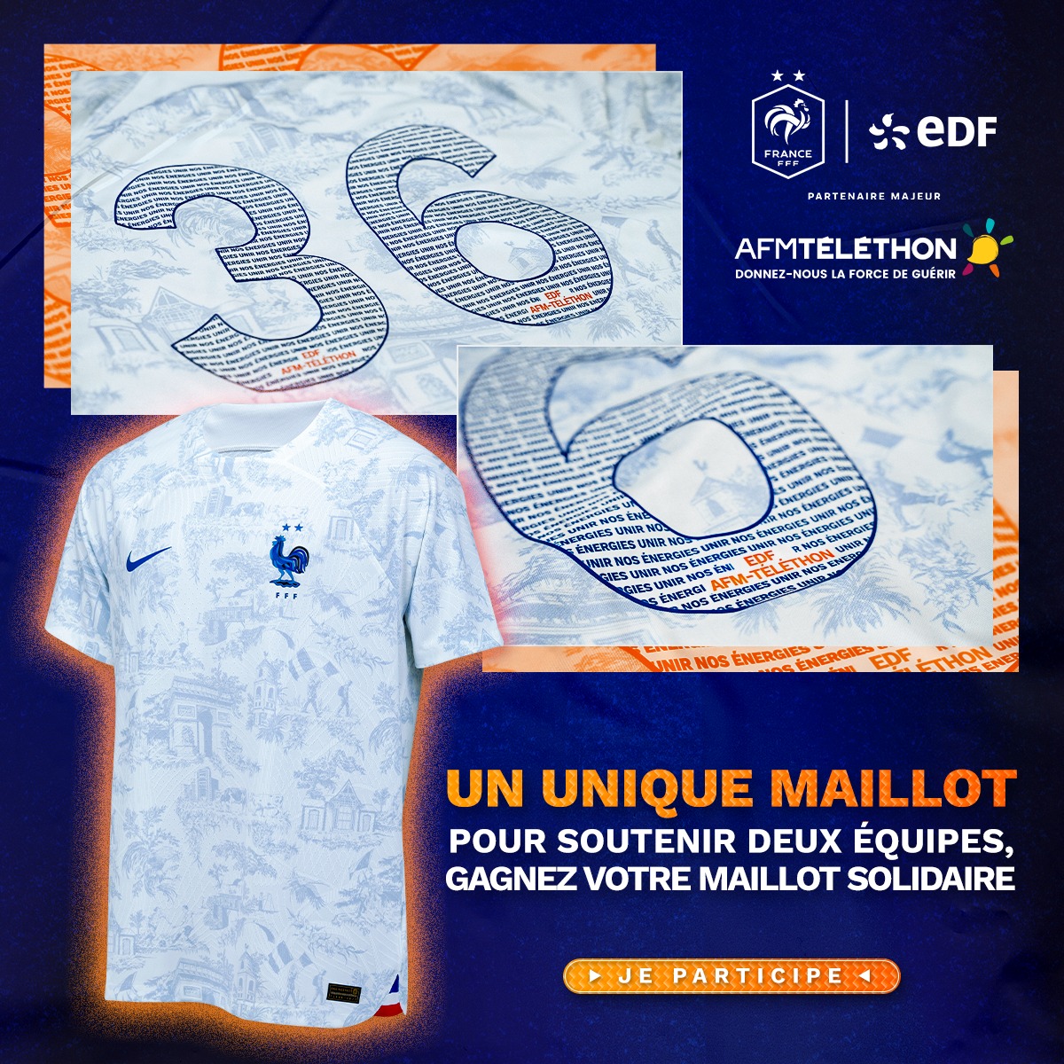 En parallèle, un jeu concours offrant un maillot collector de l’équipe de France floqué « Téléthon » et du slogan “Unir nos Énergies » est également déployé.