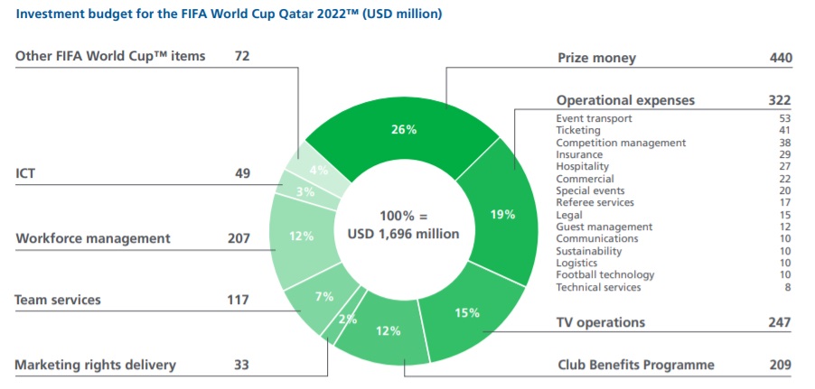 Face à ces revenus, la FIFA compte dépenser un total de 1,696 milliard de dollars pour la Coupe du Monde Qatar 2022.