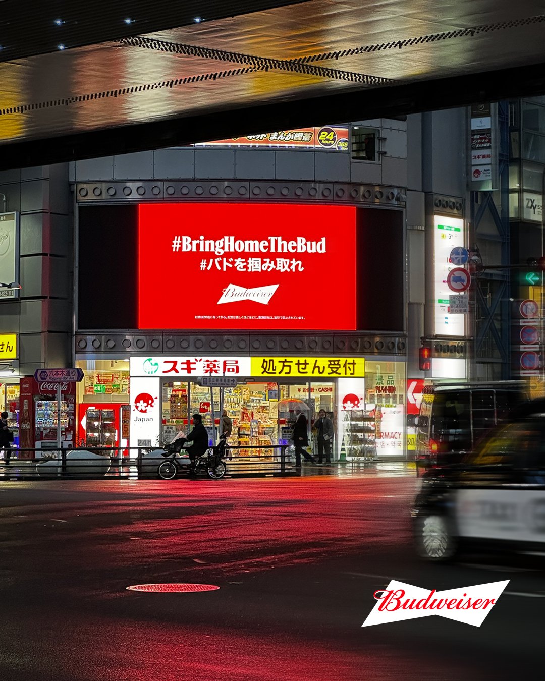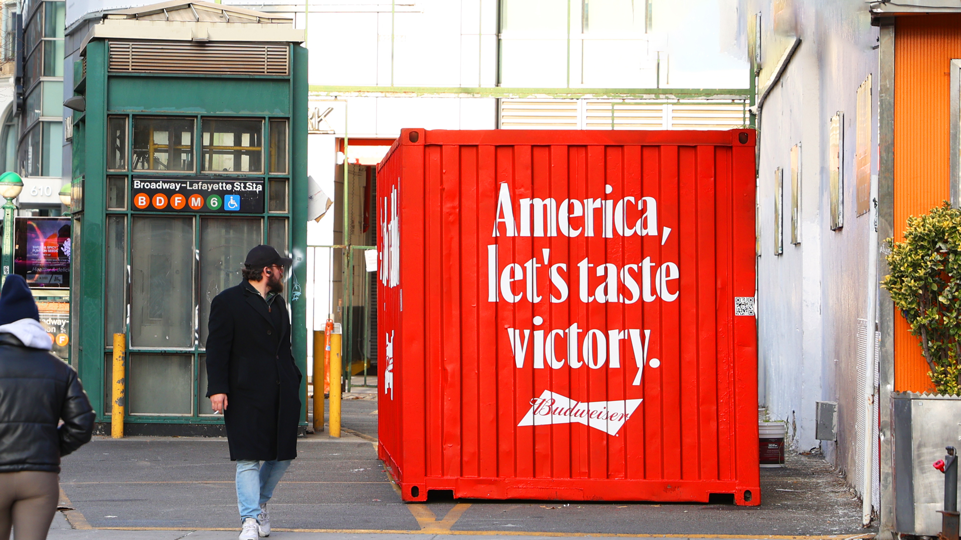 Dans certains pays participant à la compétition, Budweiser mène également une campagne de street marketing #BringHomeTheBud en installant ses containers rouges à certains endroits stratégiques. De quoi offrir une célébration spéciale aux fans du pays vainqueur (et certainement un lot de consolation pour les perdants ?). En France, Loi Evin oblige, rien pour le moment de visible dans nos rues, en tout cas sous la marque Budweiser.