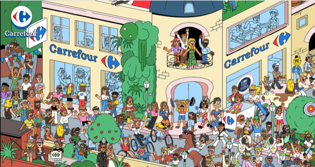 Sur le site dédié ousecachentlesmascottes.carrefour.fr, les internautes disposent de trois chances pour trouver au moins une des deux mascottes des Jeux Olympiques et Paralympiques de Paris 2024 dissimulées dans une image. Un cherche et trouve façon « Où est Charlie » ou encore « La famille Oukilé ».