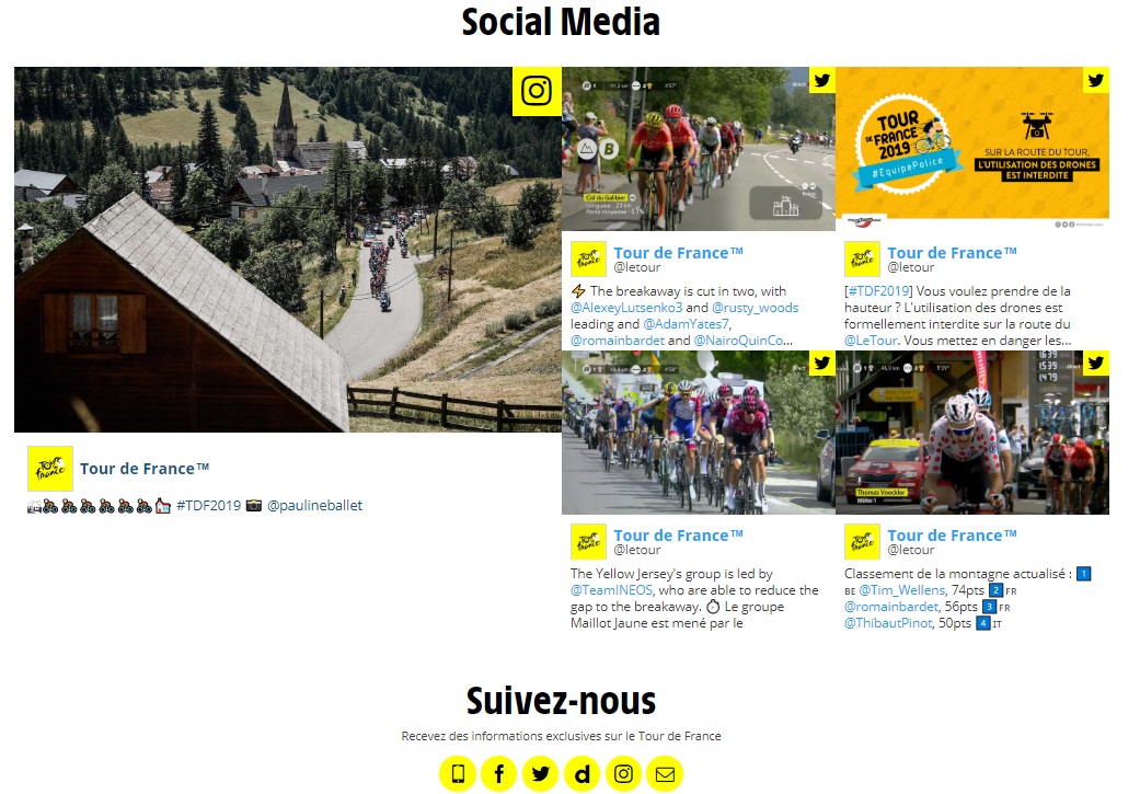 Pour rester sur la thématique de la Caravane, sachez que depuis quelques années, la Caravane Publicitaire du Tour de France, évènement dans l’évènement qui accueille 31 marques et institutions en 2019, possède ses propres comptes sur Instagram, Twitter et Facebook. Une fenêtre de visibilité supplémentaire pour les marques grâce à la production de contenus dédiés.