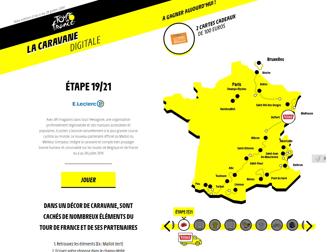Outre des contenus soignés et la fantasy league propulsée par Feeling Sports, les équipes d’A.S.O. ont également reconduit la Caravane Digitale dans un nouveau format cette année. Sur le site dédié conçu par Hobbynote, les internautes sont invités à participer chaque jours à des défis afin de remporter des lots. Une bonne occasion pour les sponsors d’entrer en contact direct avec les participants. « Notre envie était de reproduire l’environnement de la caravane du tour, avec un itinéraire et de nouveaux éléments chaque jour. Les joueurs sont invités a trouver des éléments cachés dans une caravane américaine des années 70 » ajoute Vincent Pereira.
