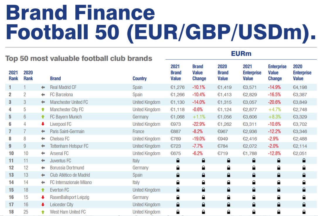 Pour consulter la version gratuite du rapport Brand Finance Football 50 2021, c’est ici.