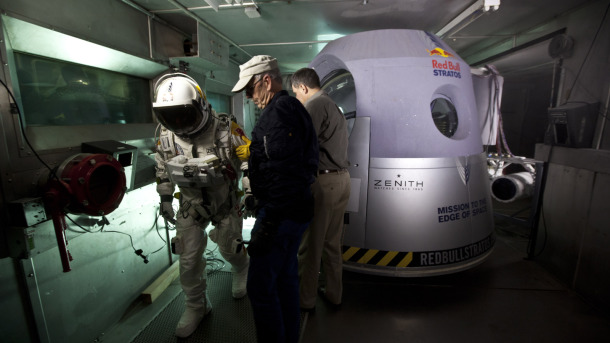 Entouré d’une équipe d’experts en aérospatiale, l’athlète autrichien Félix Baumgartner est prêt à relever le défi Red Bull Stratos. Cette mission consiste à s’élancer d’une capsule emmenée par un ballon depuis une altitude de 36 000 mètres (120 000 pieds) pour réaliser un nouveau record de chute libre depuis la stratosphère. Félix Baumgartner veut être le premier homme à dépasser la vitesse du son avec comme seule protection sa combinaison. Son exploit permettra également de collecter des données encore jamais obtenues, destinées à faire avancer la médecine. Après une série de tests réalisés au Texas dans une chambre pressurisée très élaborée, la mission a pris ses quartiers à Roswell, Nouveau Mexique, pour la phase décisive du projet.