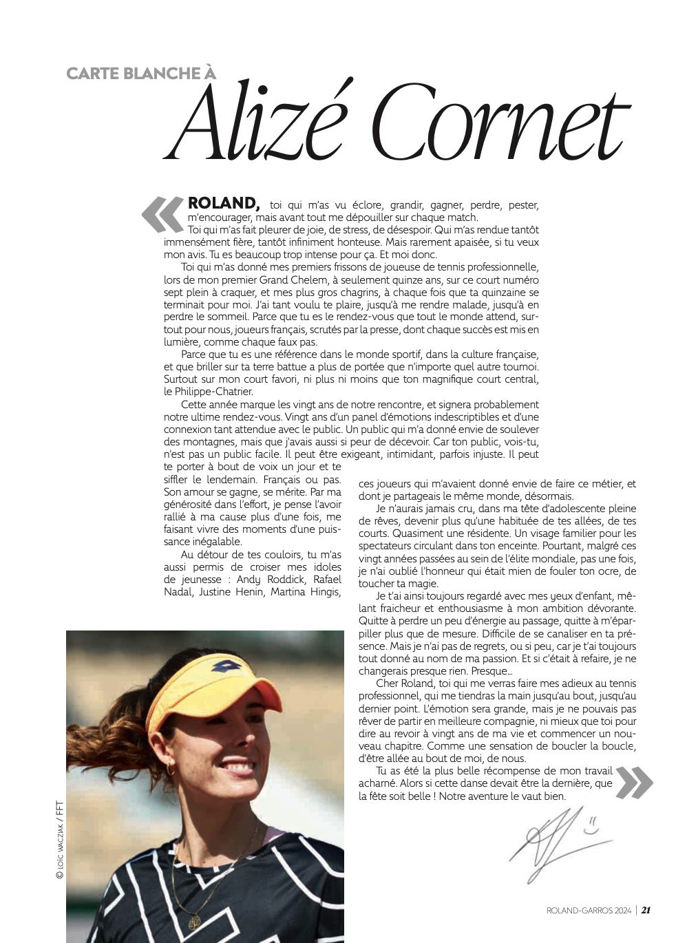 Pour sa dernière journée dans la peau d’une joueuse de tennis, celle qui excelle dans l’écriture avec déjà 2 romans à son actif a écrit une lettre dans le magazine du jour.