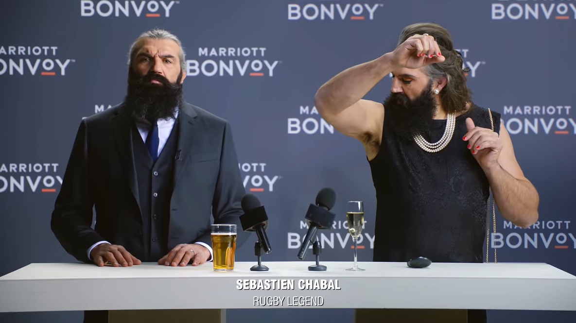 Pour promouvoir son programme de fidélité « Marriott Bonvoy », le groupe hôtelier américain met en scène « Caveman » dans une série de vidéos humoristiques, dans la lignée de la campagne menée il y a un an. Après avoir revisité le classique « Hey Baby » de DJ Otzi, Sébastien Chabal s’attaque à la chanson I’m Gonna Be (500 Miles) de The Proclaimers.