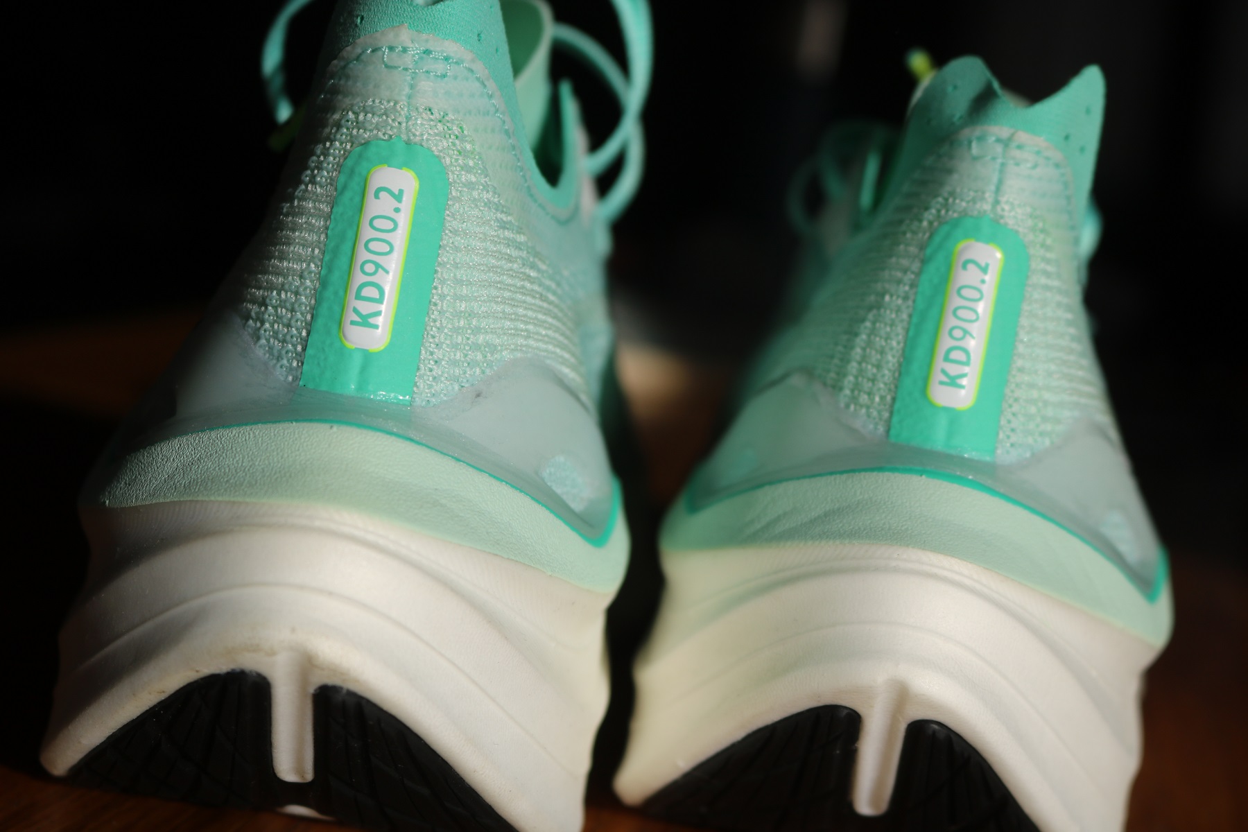 Dans le détail, la chaussure KD900.2 une chaussure sans plaque carbone idéale pour les entraînements intenses et les compétitions. A l’intérieur, on retrouve une mousse intégrée à une épaisseur de semelle maximale (38,5 mm) pour un amorti performant.
