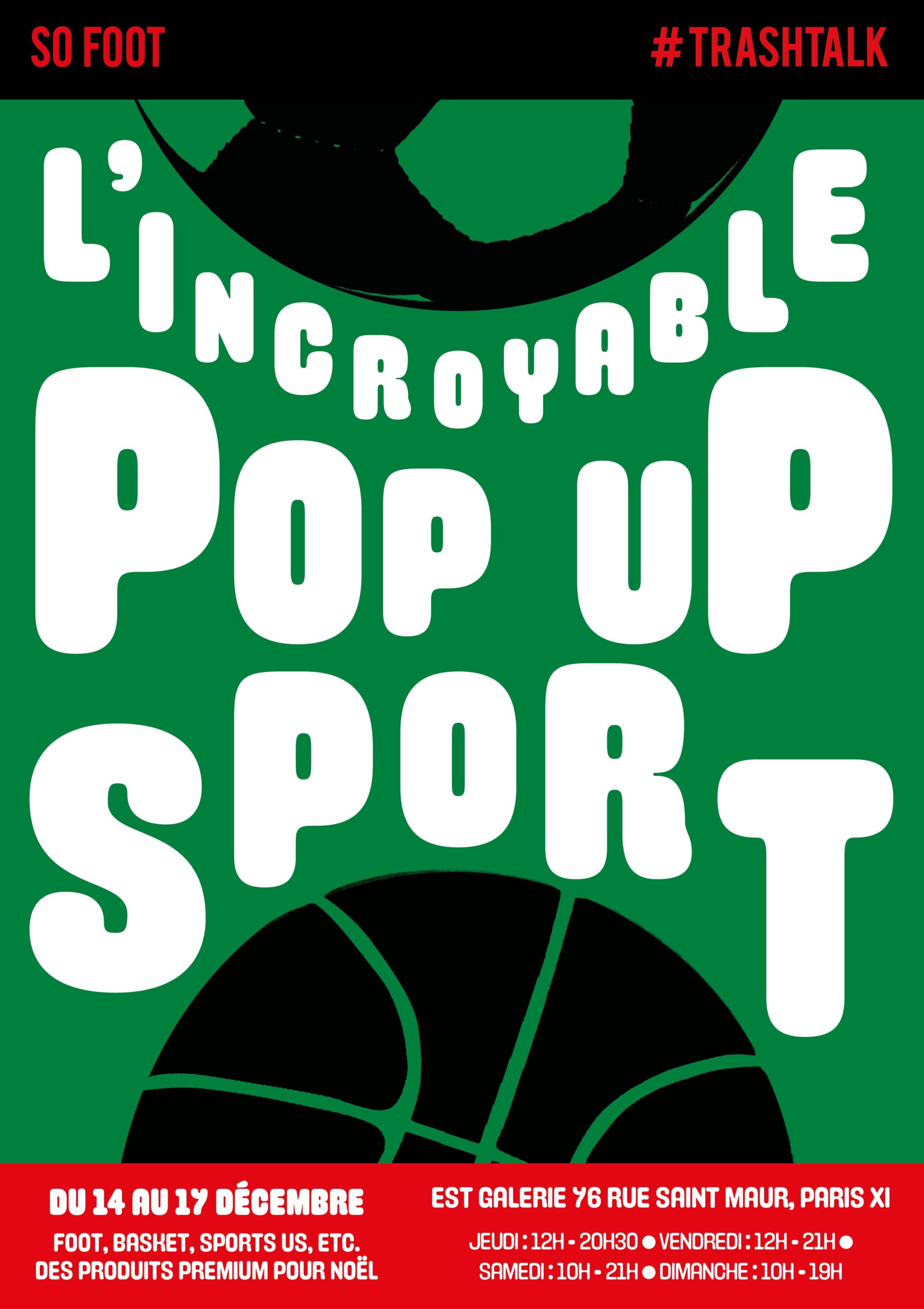 À la veille des fêtes de fin d’année, le magazine So Foot et le média TrashTalk se sont associés pour créer « l’Incroyable Pop-Up Sport » du 14 au 17 décembre.