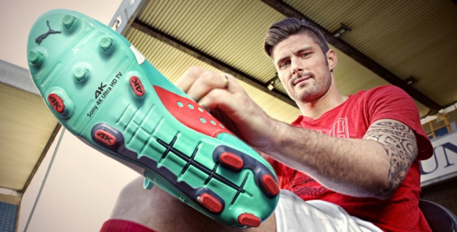 Sony s’affiche sous les chaussures PUMA d’Olivier Giroud