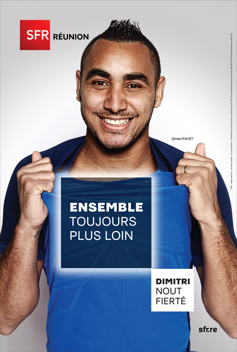 Le joueur de West Ham s’est ainsi engagé pour une durée de 2 ans et demi et sera mis en scène dans différentes campagnes publicitaires. « Les premiers échanges ont eu lieu avant l’Euro. Ils ont rapidement évolué vers la concrétisation d’un partenariat, en pleine phase de poule de la compétition » nous précise Yves Gauvin, directeur Marketing et Communication de SFR à La Réunion et à l’initiative de ce projet de partenariat. « Les fans de foot suivent sa carrière de près depuis plusieurs mois et SFR Réunion ne pouvait que s’intéresser au succès de la carrière de ce prodige qui est né et a grandi à Saint-Pierre, au sud de l’île. Le niveau de Dimitri Payet arrive à son apogée et l’Euro 2016 en est la concrétisation. Ce partenariat est l’aboutissement d’une forte volonté de part et d’autre de travailler ensemble. Les discussions avec Dimitri Payet ont été conviviales. Malgré son statut privilégié qui en fait une Star, Dimitri Payet reste simple et très accessible. Nous sommes fiers et nous réjouissons à l’idée de pouvoir travailler avec lui au-delà de la prochaine coupe du monde. »