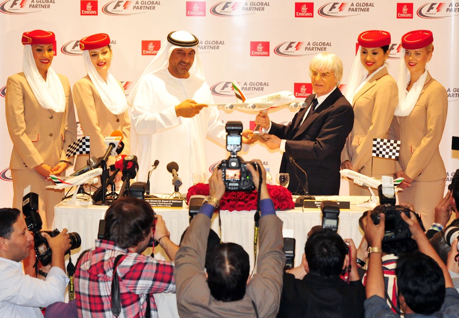 Une annonce faite aujourd’hui par Sheikh Ahmed bin Saeed Al-Maktoum, le Président d’Emirates Airline et Bernie Ecclestone, le boss du grand cirque de la Formule 1. Le somme de 200 millions de dollars sur les 5 années est avancée par de nombreux médias et spécialistes des paddocks.