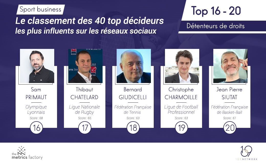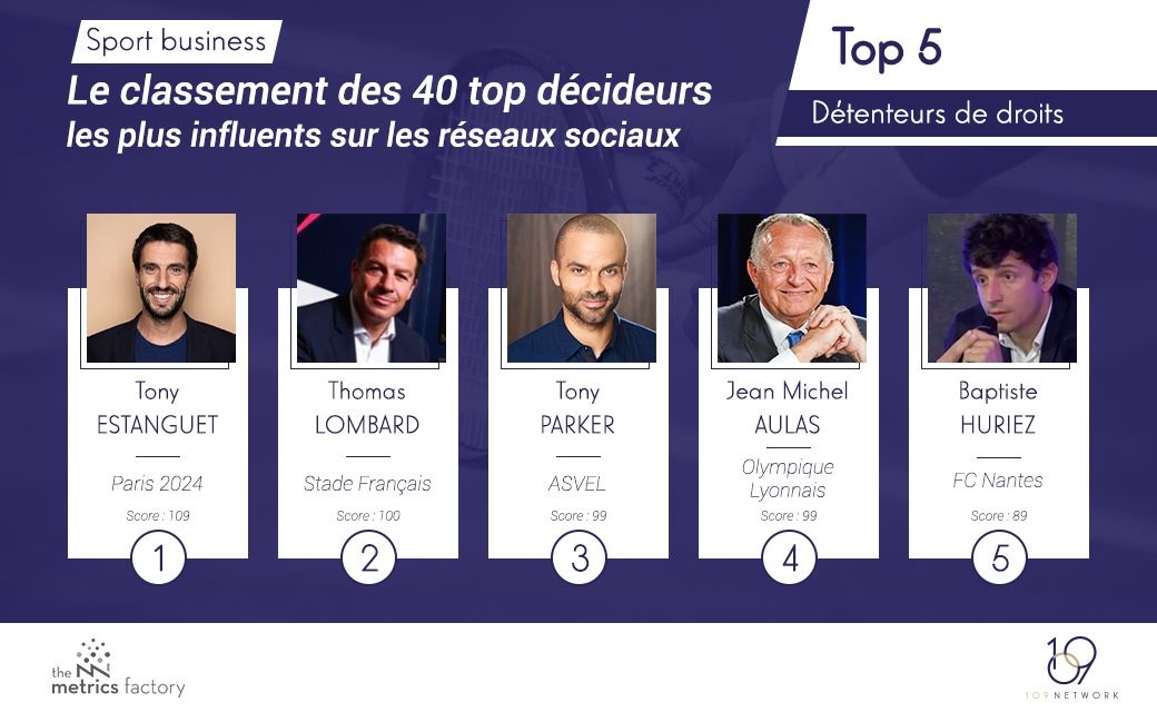 Il y a quelques jours, le réseau professionnel « 109 Network » et The Metrics Factory ont réalisé un classement des décideurs du sport business les plus influents sur les réseaux sociaux Twitter et Linkedin.