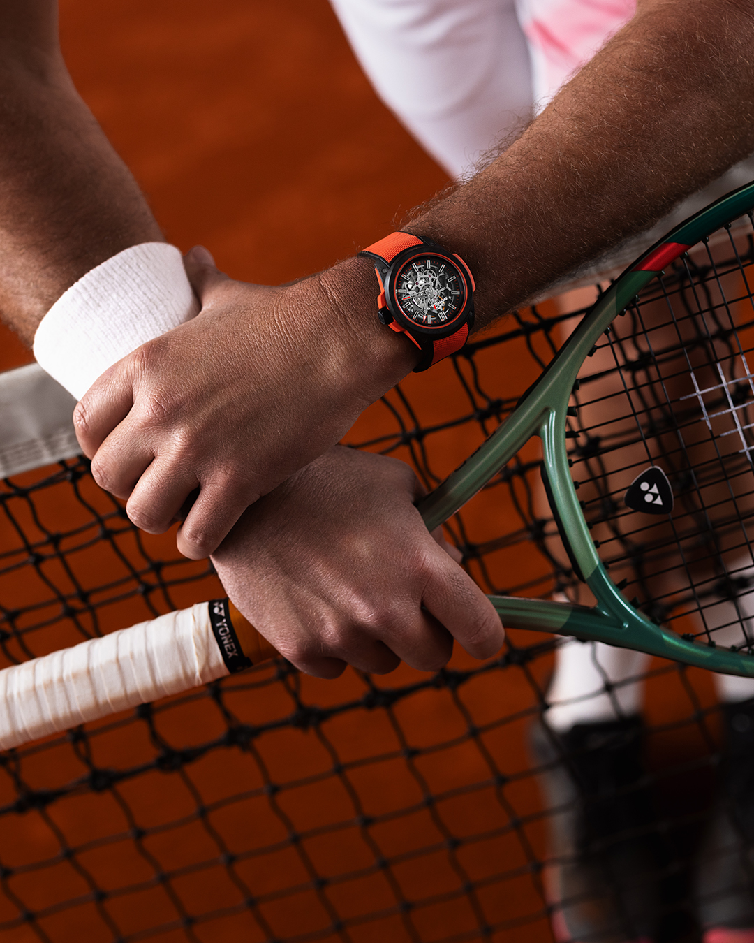 En turquoise, orange façon « terre battue » et vert façon « gazon », la montre est en vente au prix de 5 250 euros.