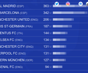 Actus Football Social Média & Influence Le TOP 100 des clubs de football les plus suivis sur les réseaux sociaux Instagram, Twitter, Facebook et TikTok (juin 2023 – CIES) ParAri Hatchwell15 juin 2023