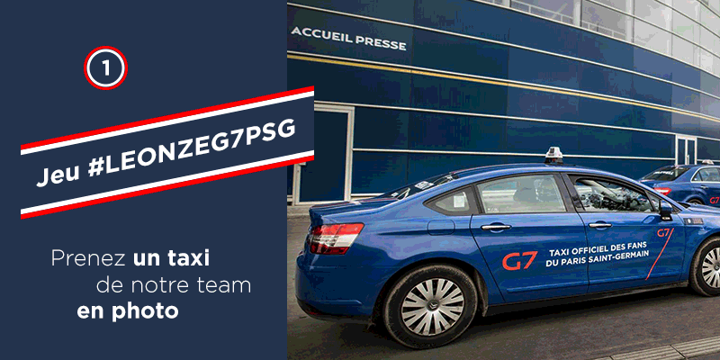 Pour offrir un maximum de retombées à cette opération de taxis G7 aux couleurs du PSG, la société a décidé d’organiser un jeu concours sur les réseaux sociaux. Pour participer, il vous suffit de prendre en photo un taxi G7 PSG et de le partager avec le hashtag #LeOnzeG7PSG. 2 places VIP pour un match de Ligue 1 du Paris Saint-Germain, un maillot ou encore 1 ballon et une écharpe sont en jeu !