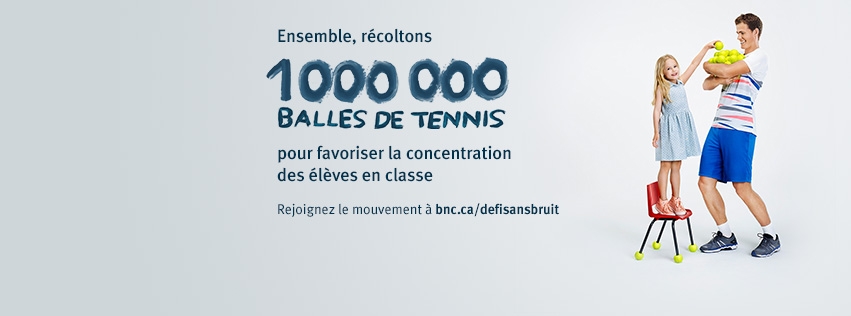 Sponsor très actif dans le tennis canadien, Banque Nationale organise également le « Défi sans bruit » dont le but est de récolter des balles de tennis qui sont redistribuées dans des écoles et apposées aux pieds des chaises afin d’en atténuer le bruit et de favoriser la concentration des élèves. En 2014, cette opération a déjà permis de récolter près d’1 million de balles. Un programme soutenu par le tennisman canadien Vasek Pospisil.