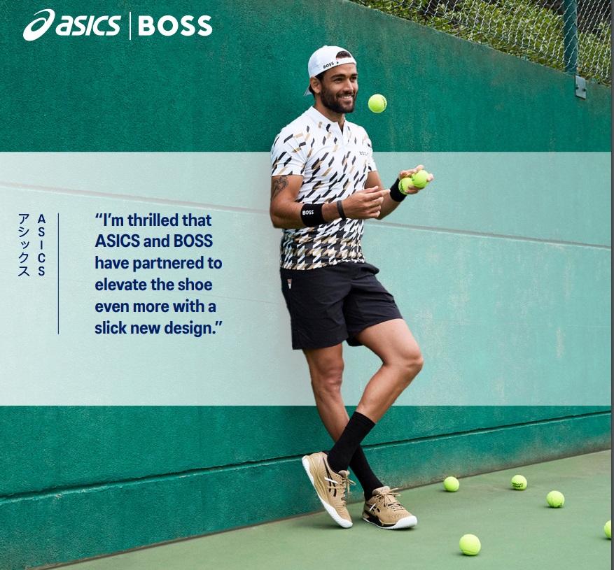 A cette occasion, la marque BOSS, Nameur du tournoi et équipementier textile du joueur de tennis italien, a dévoilé une nouvelle collection capsule dont une paire de chaussures créée en partenariat avec Asics, un polo, un short et une casquette.