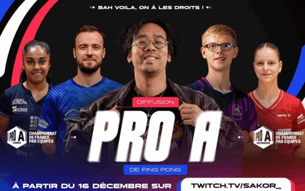 Le tennis de table français poursuit sa mue médiatique. La Pro A, championnat national par équipes, va désormais bénéficier d’une nouvelle vitrine grâce à Twitch. Le streamer français Sakor a annoncé avoir acquis les droits de diffusion de la compétition pour sa chaîne, élargissant ainsi l’exposition d’un championnat déjà présent sur YouTube via la Fédération française de tennis de table (FFTT).