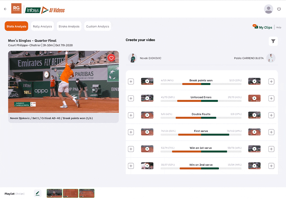 Depuis 2019, Infosys est en charge des statistiques et autres datas du Grand Chelem parisien à la suite du retrait d’IBM avant l’édition 2018.