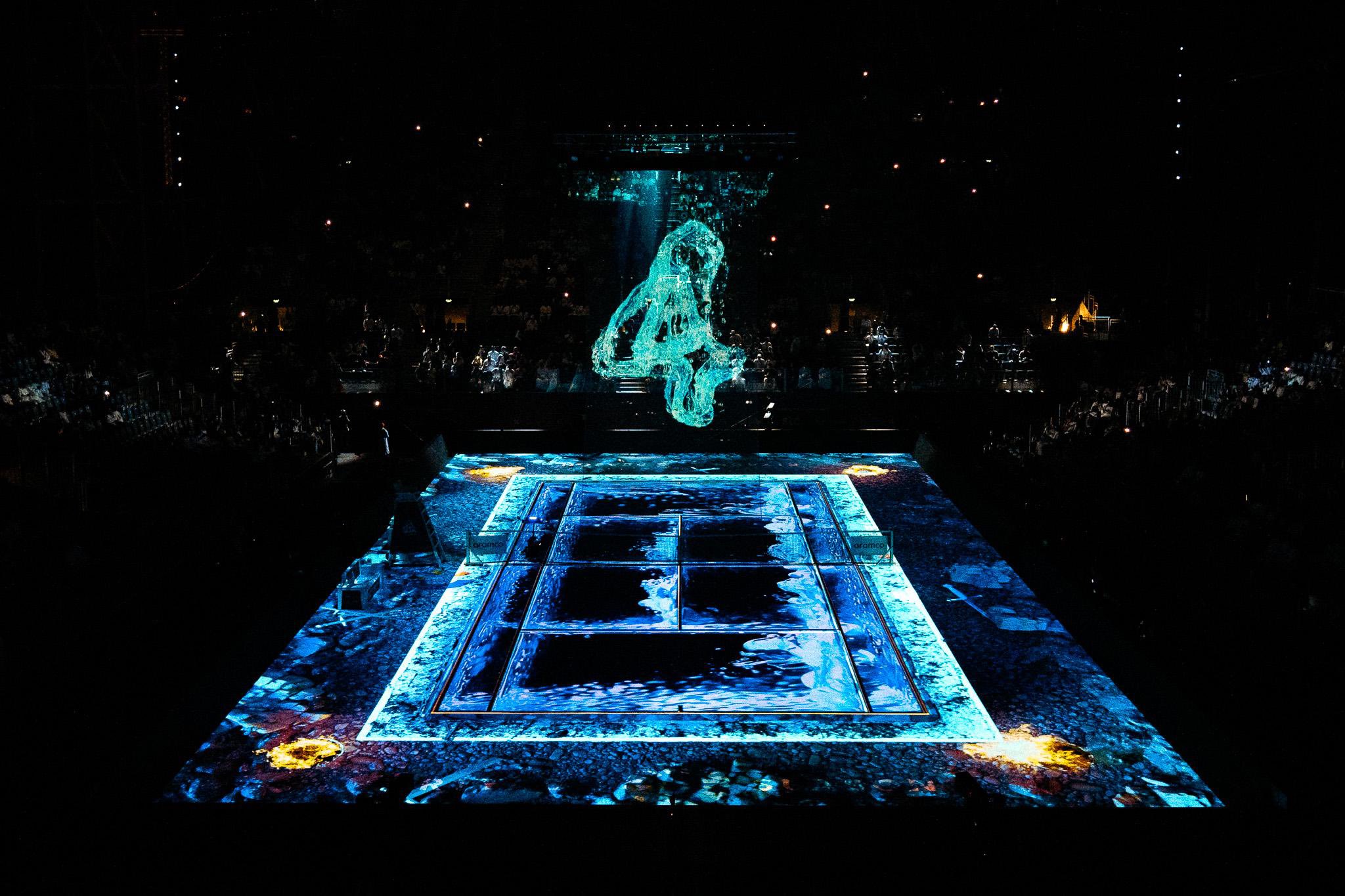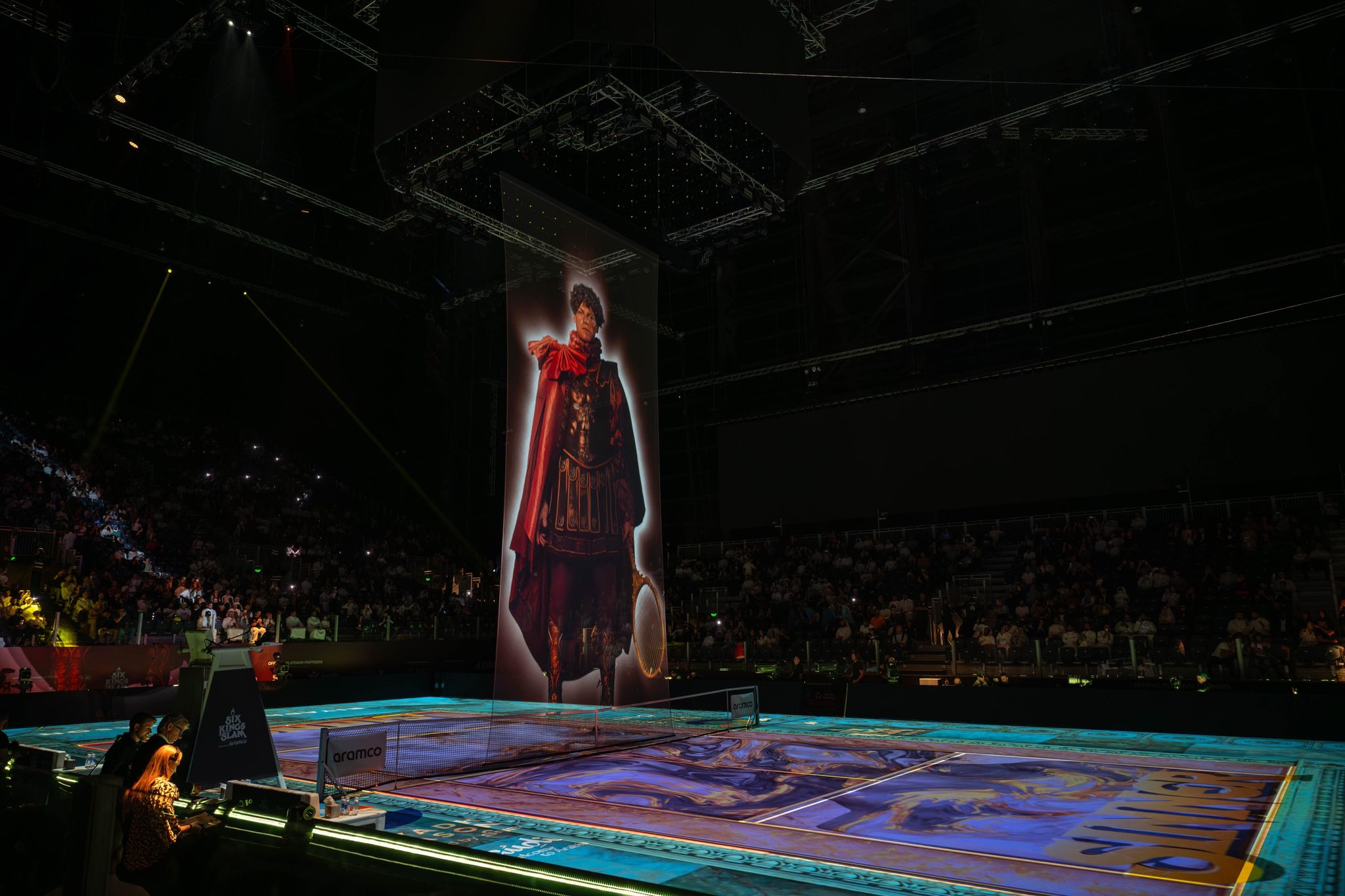 En France, l’exhibition est diffusée sur DAZN (compte gratuit) et se déroule dans une salle de 8 000 places « The Venue ». Sur place, l’organisation a également soigné la présentation avec des animations vidéos (mapping 3D) projetées sur le court.