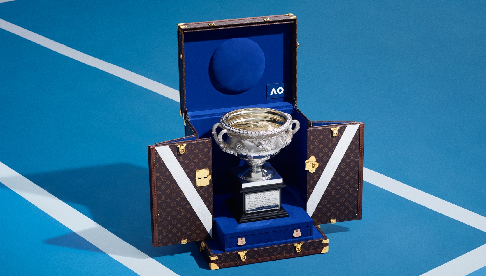 Dans le cadre de cet accord, la marque de luxe fait dans le classique en devenant « malle officielle » de l’Australian Open. 2 modèles ont ainsi été créés pour les trophées des simples Messieurs (Norman Brookes Challenge Cup) et Dames (Daphne Akhurst Memorial Cup).