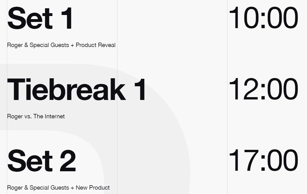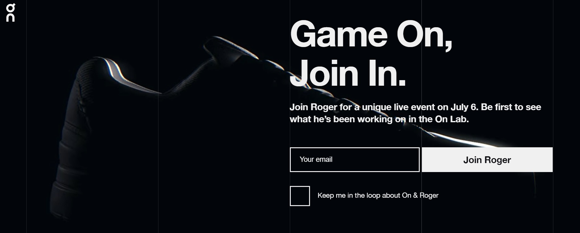 Pour accompagner l’annonce de ce lancement, la marque a mis en ligne le site internet theroger.com sur lequel on peut apercevoir quelques lignes de la future shoes. « Le 6 juillet 2003, Roger a gagné son premier titre à Wimbledon. 17 ans après, tu es invité à un autre moment épique. Ne passe pas à côté de la présentation du premier article On créé avec Roger. Participe à un face-à-face avec Roger dans une émission interactive unique ».