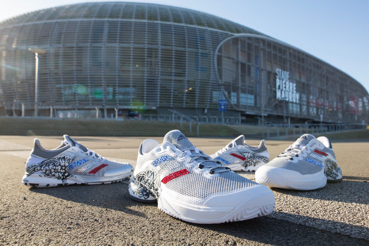 Partenaire de Lucas Pouille et Jo-Wilfried Tsonga, adidas a célèbré la victoire en réalisant deux modèles uniques de chaussures de tennis personnalisés (adizero ubersonic pour Pouille et Barricade 2017 pour Tsonga) par Pierre Navarro (orravan design). Des créations inspirées par le saladier d’argent et offertes aux deux joueurs. La marque précise que les deux joueurs ont complété la création en choisissant les mots qu’ils souhaitaient voir figurés sur leurs paires respectives et importants à leurs yeux comme « Famille ». Les hashtags #tousenbleu et #heretocreate sont également présents. Notons que quelques exemplaires supplémentaires ont été réalisés et mis en jeu sur beIN SPORTS qui codiffusait la finale.