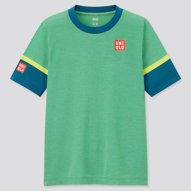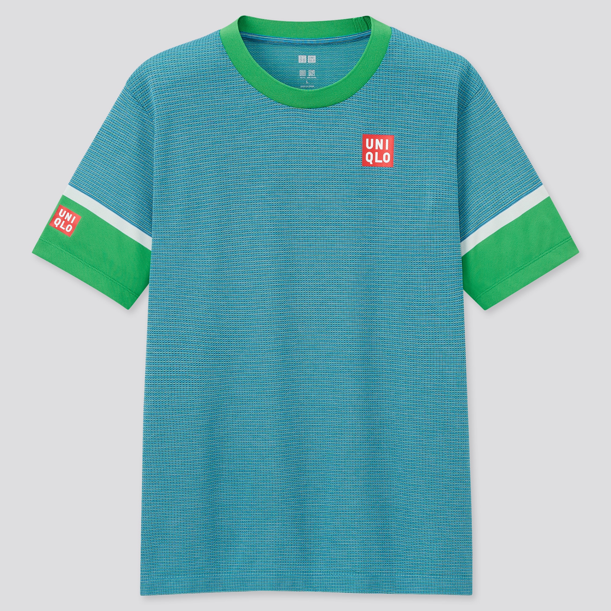 Pour son autre ambassadeur Kei Nishikori, la marque japonaise propose également deux tenues colorées avec un t-shirt vert-jaune-bleu et un t-shirt bleu-blanc-vert. Des t-shirts en vente au prix de 39,90€.