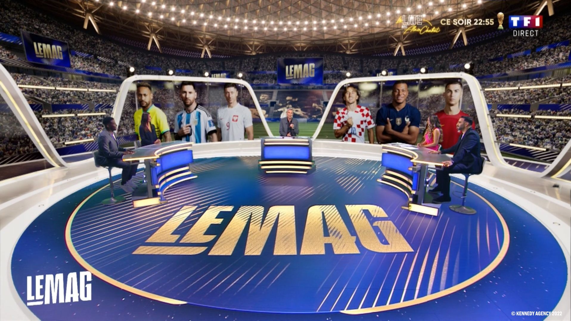 Pour enrichir l’expérience visuelle des téléspectateurs, TF1 a collaboré avec Kennedy Agency pour imaginer et réaliser le plateau du Mag.
