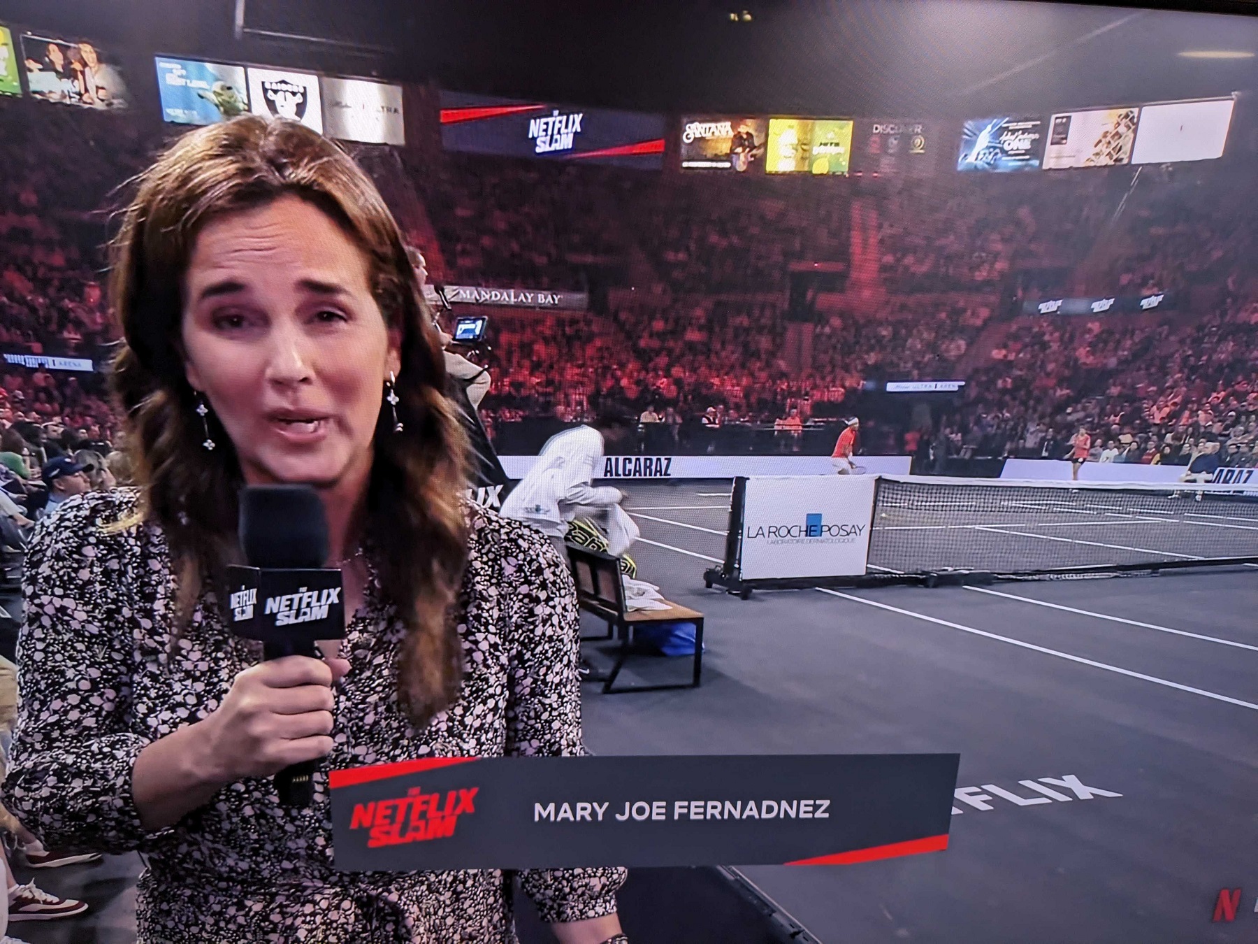 Parmi les marques qui seront bien visibles, on peut citer la marque de bière Michelob Ultra, évidemment, ainsi que MGM Rewards, le programme de fidélité des hôtels MGM Resorts qui détiennent cette salle. Juste à côté, on retrouve ainsi l’hôtel « Mandalay Bay » qui proposait ainsi des packages complet avec des nuits d’hôtel et la soirée « The Netflix Slam » (jusqu’à 4 700$ par personne).