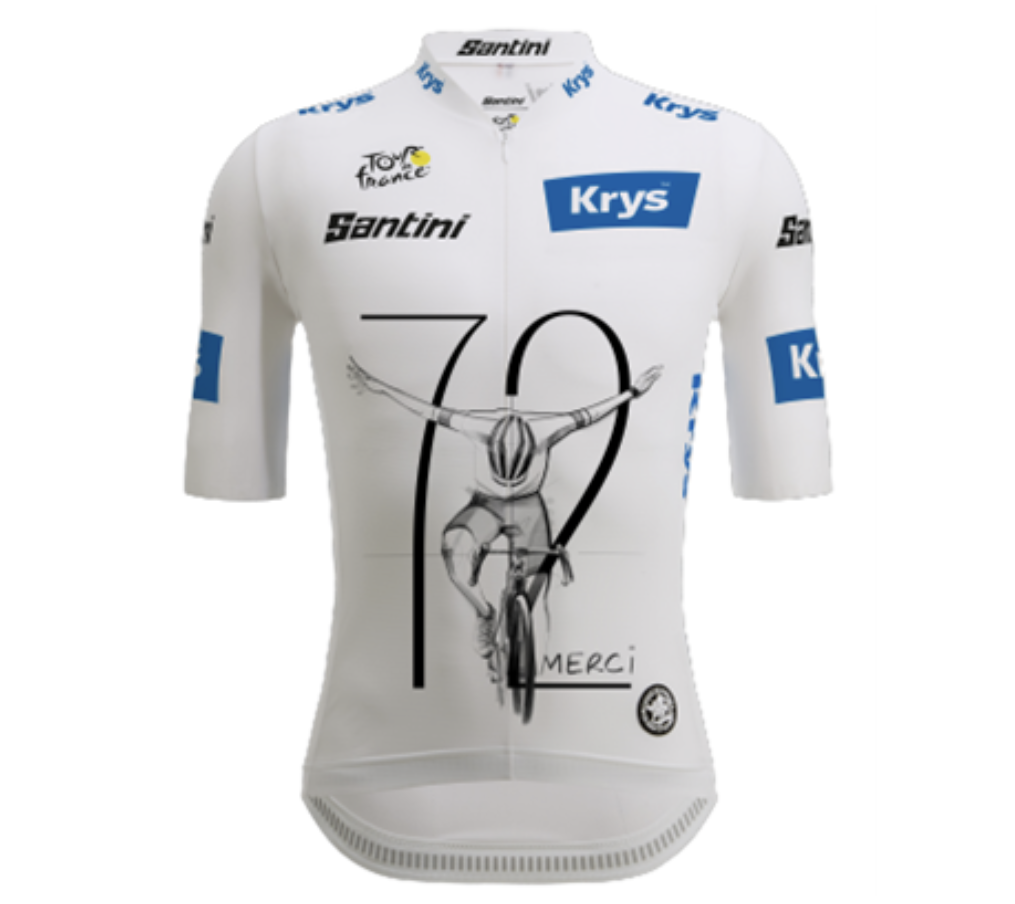 Pour rendre hommage au coureur d’UAE Team Emirates qui aura offert une forte visibilité à Krys ces dernières années, l’opticien, sponsor officiel du maillot blanc, a confectionné un maillot inédit à son effigie.