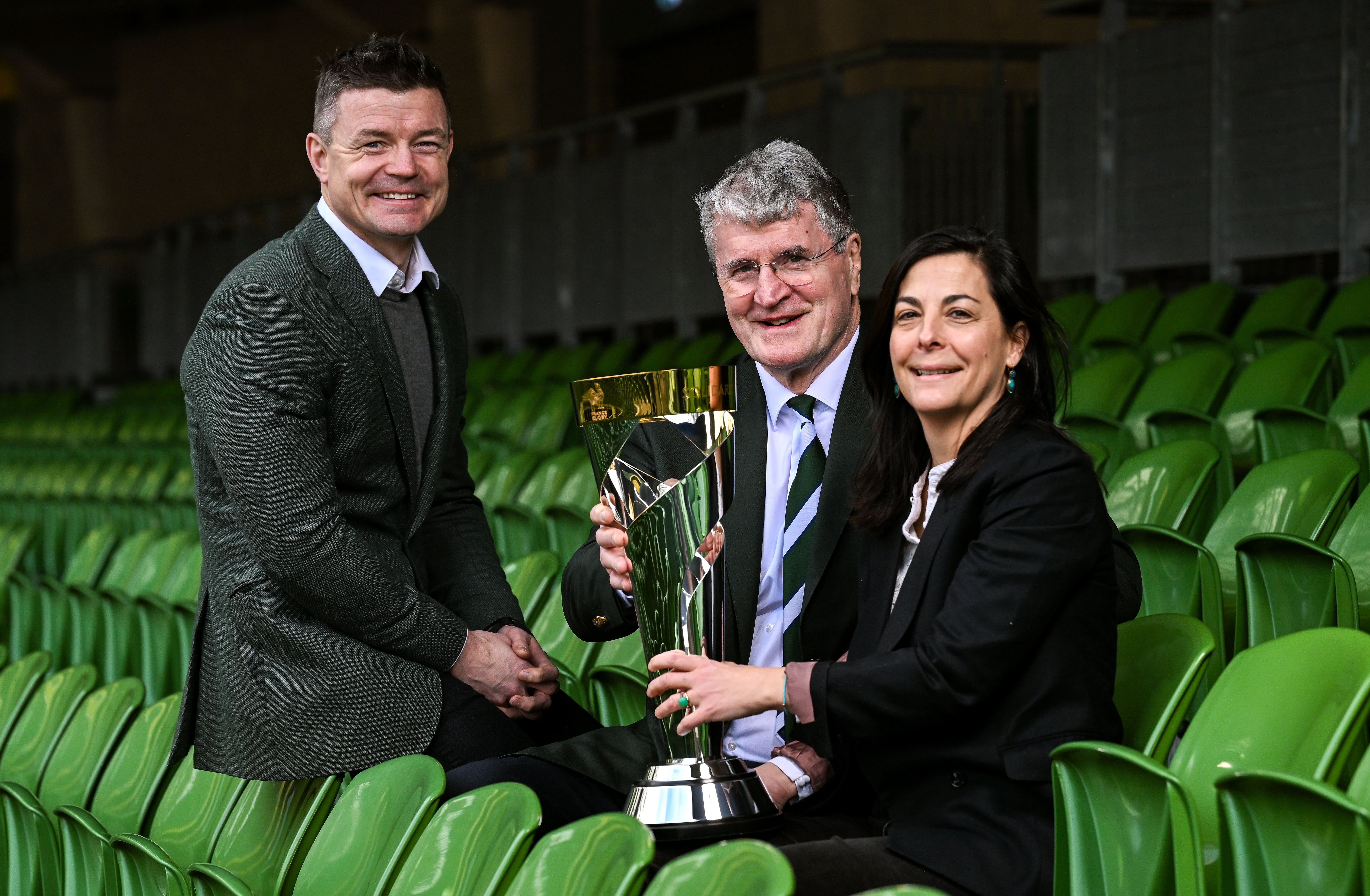 Brian O’Driscoll, John O’Driscoll, président de l’IRFU et Céline Place, ambassadrice de France en Irlande.