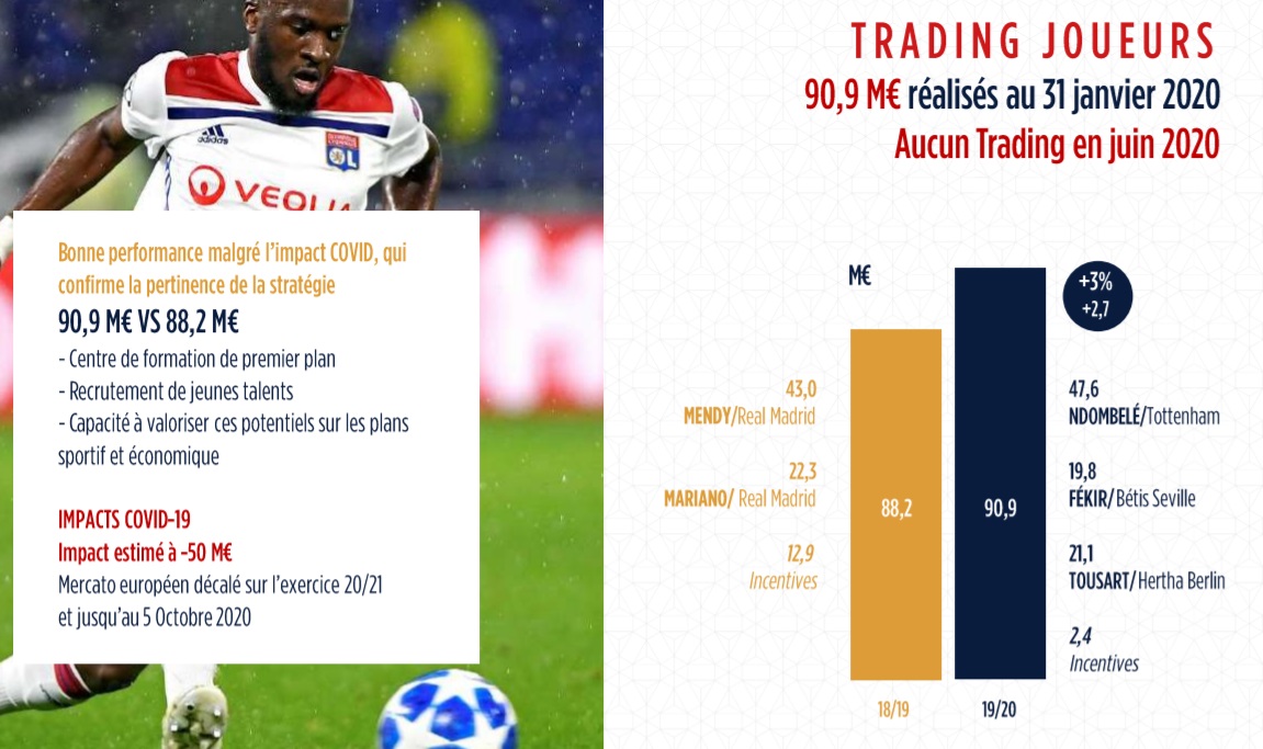 « Compte tenu de l’absence de participation du club en Coupe d’Europe au cours de la saison 2020-2021, des restrictions importantes qui pèsent sur l’activité du groupe en raison de la crise sanitaire, et sur la base d’un niveau de trading normatif réalisé au cours de l’exercice 2020-2021, le résultat net de l’exercice 2020-2021 devrait être déficitaire » précise OL Groupe.