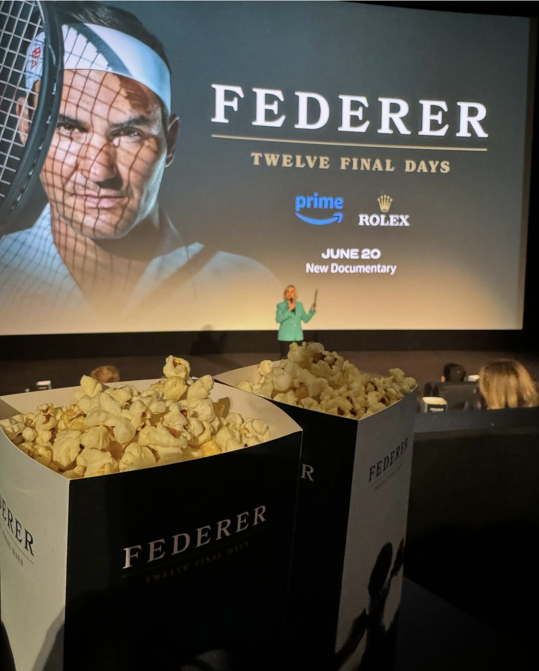 Pour l’occasion, les quelques chanceux présents ont pu découvrir en avant-première le documentaire « Twelve Final Days » en présence de Federer. Bien évidemment, le pop corn était aux couleurs de l’évènement. Une soirée londonienne à laquelle était associée Rolex, sponsor historique de Roger Federer et qui est par ailleurs partenaire exclusif du documentaire Amazon.