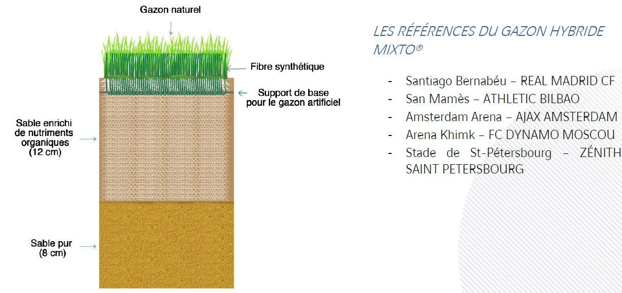 « Si l’on doit prendre en référence les investissements menés sur les stades de Strasbourg et Caen, où le cout d’un million d’euros est évoqué, les travaux qui y sont menés concernent le système d’irrigation, de chauffage, de substrat et la pelouse hybride. Dans le même temps, le budget pour une pelouse hybride neuve (pelouse + transport + installation) s’élève de 300 000€ à 350 000€. » nous précise Yannick Hoinville, Directeur général de Le Mans Stadium, société concessionnaire du MMArena. « Au MMArena, le substrat a été remplacé et une pelouse hybride Mixto de seconde main y a été installée. Nous sommes donc dans une intervention différente situant les coûts d’investissement de la part de Le Mans Stadium, en deçà des coûts évoqués sur Strasbourg et Caen. Aussi, le transfert d’une pelouse hybride entre deux stades appartenant au même groupe VINCI Stadium, l’Allianz Riviera et le MMArena, constitue une opportunité technique et également financière ».