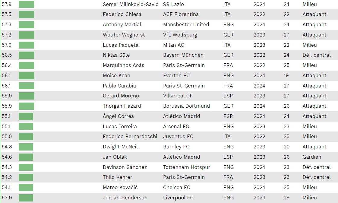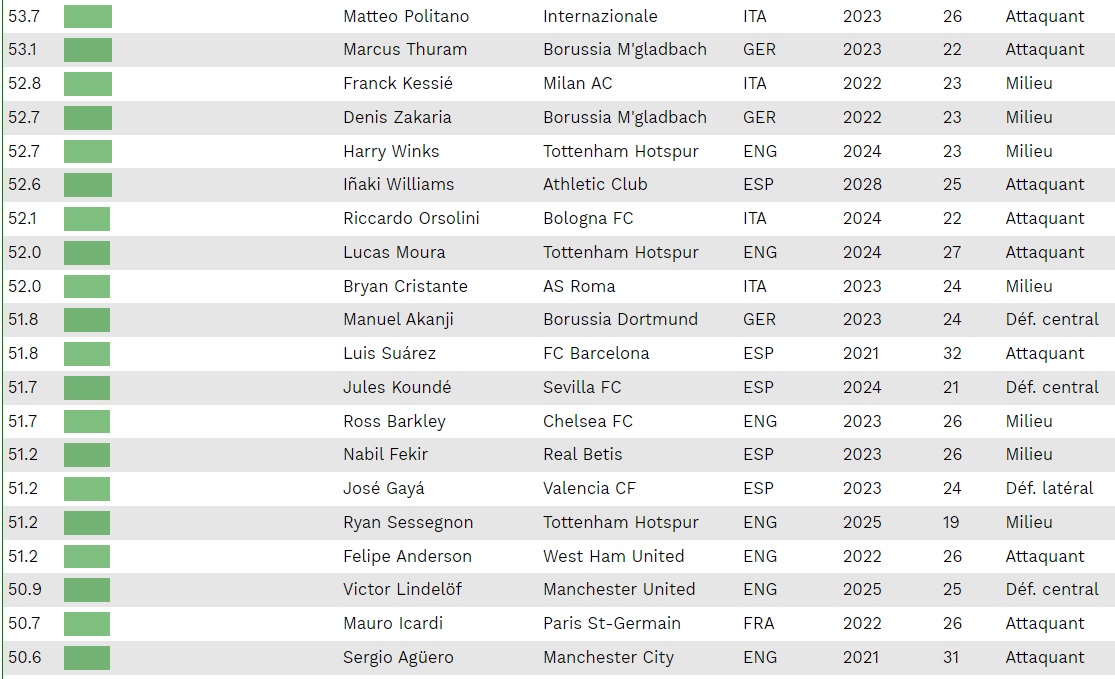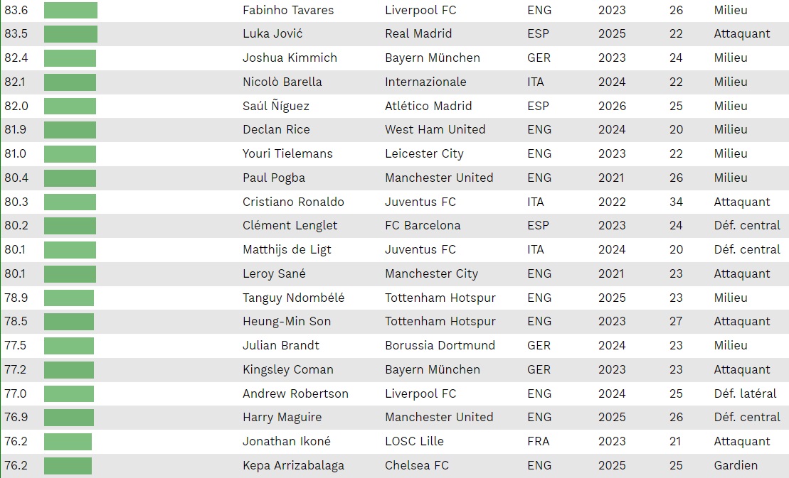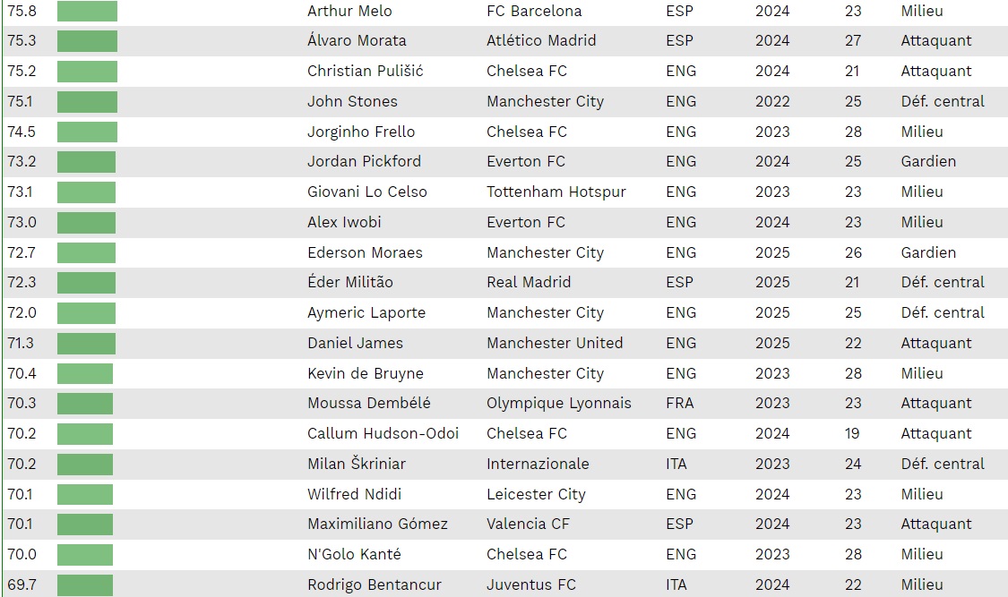 TOP 20 des joueurs de football qui valent le plus cher sur le marché des transferts (janvier 2020 – CIES)