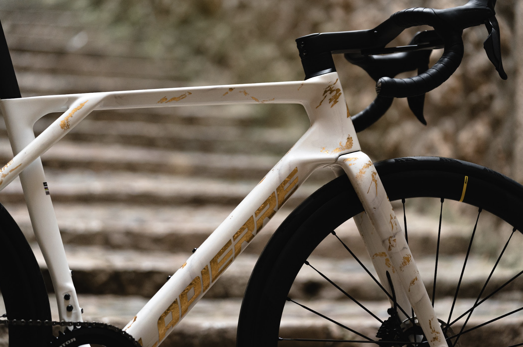 Sponsor de la triathlète française Cassandre Beaugrand depuis 2020, le fabricant de vélo Lapierre a offert un bicycle fait de marbre et de feuille d’or.