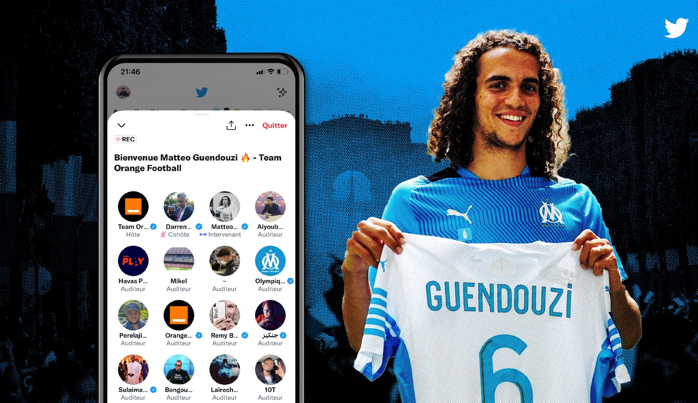 Lancée il y a plusieurs mois maintenant, la fonctionnalité « Space » qui permet de lancer très simplement une conférence audio est également un bon moyen pour des annonceurs d’engager leur communauté sur Twitter. Orange, en organisant un Space avec Matteo Guendouzi (Olympique de Marseille), a réussi à générer 530 000 impressions et 10 000 auditeurs.