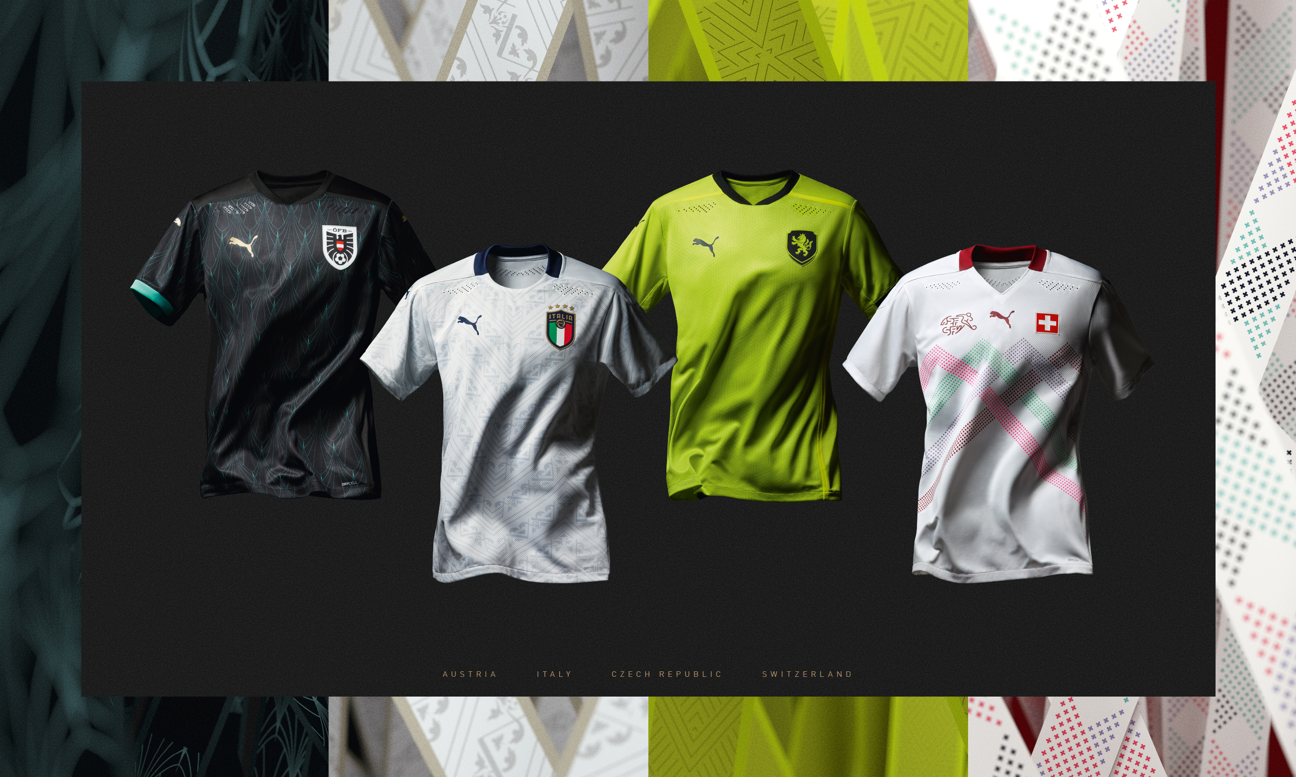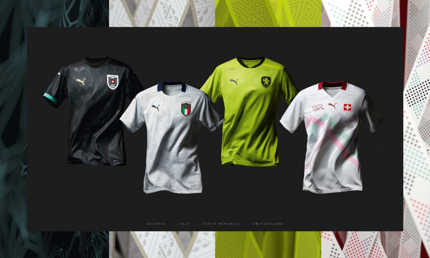 Cette semaine, Puma a dévoile les maillots extérieurs que porteront l’Italie, la République Tchèque, l’Autriche et la Suisse lors de l’UEFA Euro 2020 (12 juin – 12 juillet), organisé dans 12 villes de 12 pays différents.