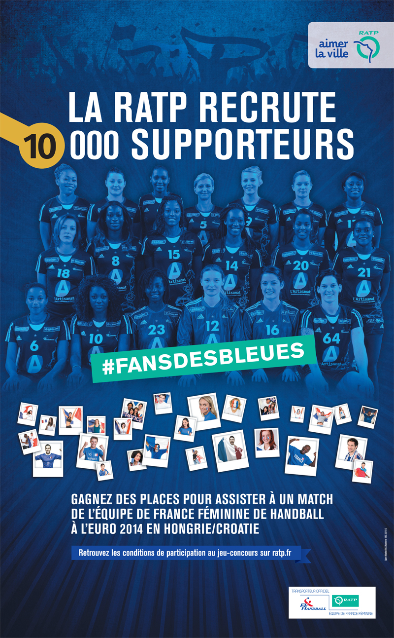 « En tant que partenaire de la Fédération Française de Handball et entreprise de service public sensible aux enjeux de mixité et d’égalité femmes – hommes, nous utilisons notre engagement dans le sport pour mettre en lumière le sport féminin. Grâce à cette opération participative, nous souhaitons fédérer nos 10 millions de voyageurs et nos 110 000 fans sur Facebook autour du handball féminin et transmettre une énergie positive aux joueuses dans la perspective de l’Euro » explique Cécile Riffard, Responsable de l’unité marque RATP, dans le communiqué.