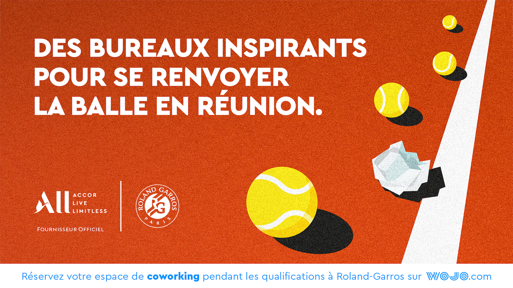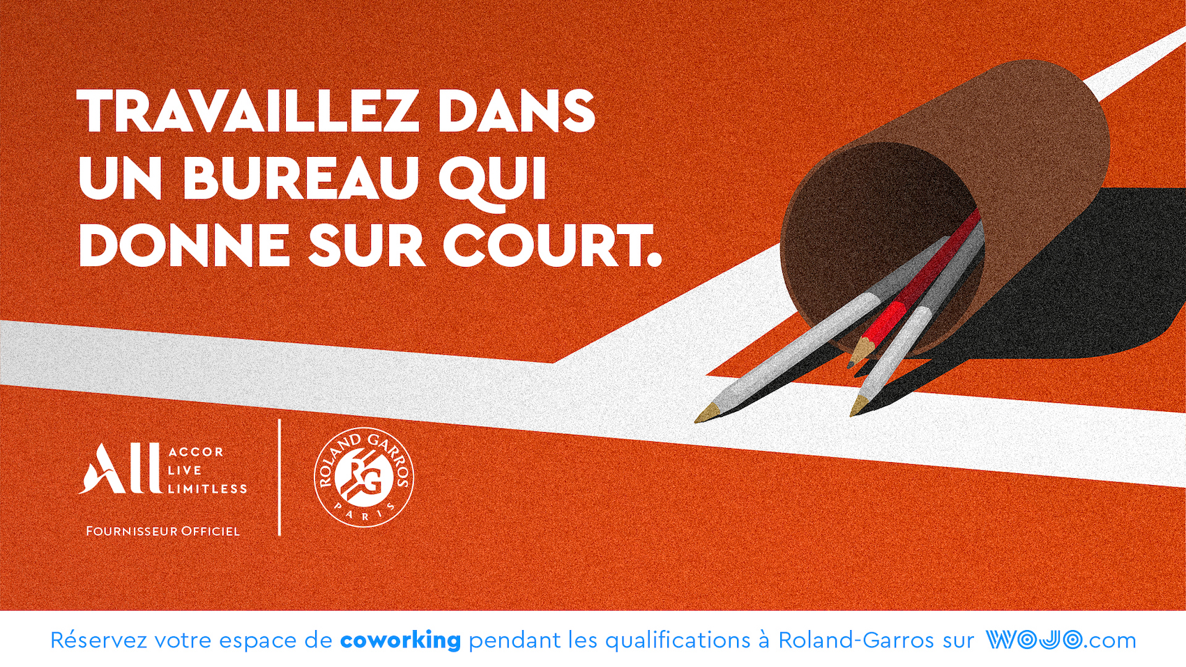 Votre bureau sur (presque) la terre battue de Roland-Garros ? Une pause-café dans les tribunes d’un court à applaudir les joueurs et les joueuses qui tentent de se qualifier pour le tableau principal ? Le concept vous tente, et bien ALL – Accor Live Limitless et Wojo, filiale du groupe Accor, vous proposent cette expérience.