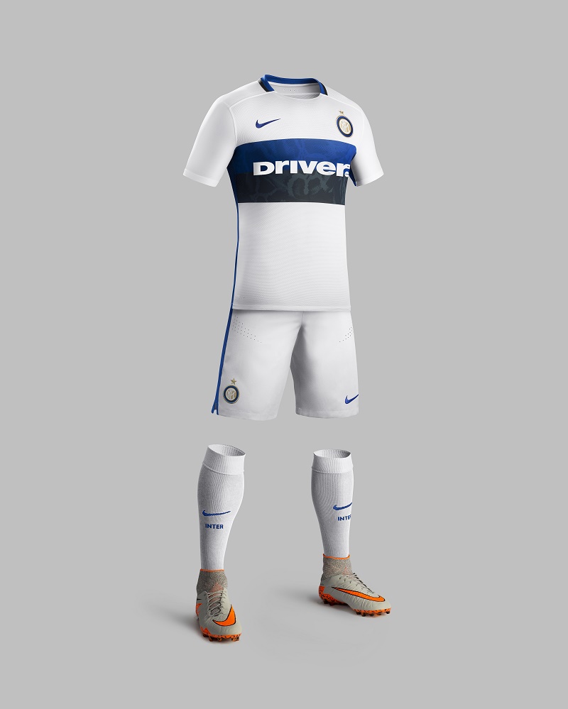 Ce matin, l’Inter Milan a dévoilé le look de son nouveau maillot extérieur pour la saison 2015/2016. Conçu par Nike, le kit blanc arbore une bande horizontale bleue et noire sur la face avant, un hommage au maillot away 90-91 du club italien qui remportait cette année là sa première Coupe de l’UEFA (25 ans).