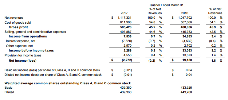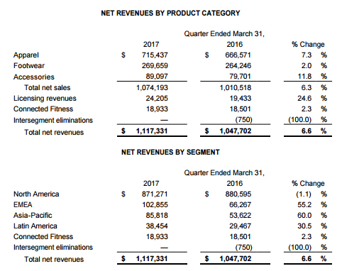 Aujourd’hui, Under Armour a présenté ses résultats financiers pour le premier trimestre 2017 s’étalant entre janvier et mars.