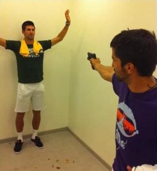 C’est la petite polémique du moment sur planète tennis. Novak Djokovic et Janko Tipsarevic ont-ils dépasser la ligne à ne pas franchir ? Tipsarevic a ainsi publié sur sa page Facebook une photo le mettant en scène en train de braquer son compatriote avec comme titre « How much $$$ would Rafa give… ». Combien serait prêt à donner Rafael Nadal pour qu’il appuie sur la gachette ou alors simplement combien donnerait Rafa pour la capture de Djokovic (A chacun son interprétation). La photo a été supprimée seulement quelques minutes après sa publication. La photo arrive au mauvais moment avec les récents évènements en Norvège. Et vous qu’en pensez-vous ?