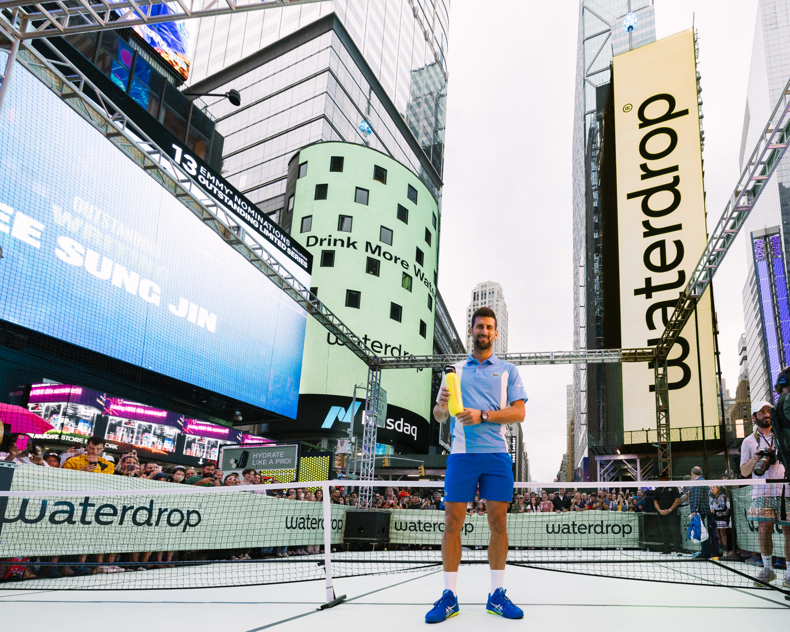 Jeudi dernier, la société waterdrop, également partenaire de l’ATP Tour, a en effet organisé une partie de tennis à Times Square en présence du joueur serbe. L’occasion de mettre en avant la marque qui promeut une hydratation durable (en réduisant la consommation de bouteilles plastiques) de manière impactante dans un lieu touristique très fréquenté.