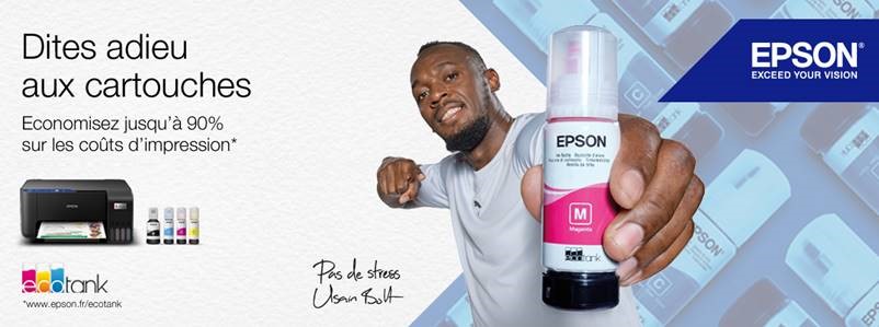 Cette semaine, Epson a dévoilé un spot publicitaire mettant en scène Usain Bolt. Une campagne pub qui prendra vie également sur les réseaux sociaux et en affichage extérieur. « La campagne mettra également en avant le service d’abonnement pour la livraison d’encre d’Epson, ReadyPrint, qui permet aux clients d’économiser jusqu’à 90 % sur les coûts d’impression, avec votre encre livrée directement chez vous avant que vous ne soyez à court » précise la marque.